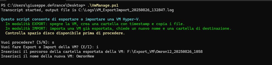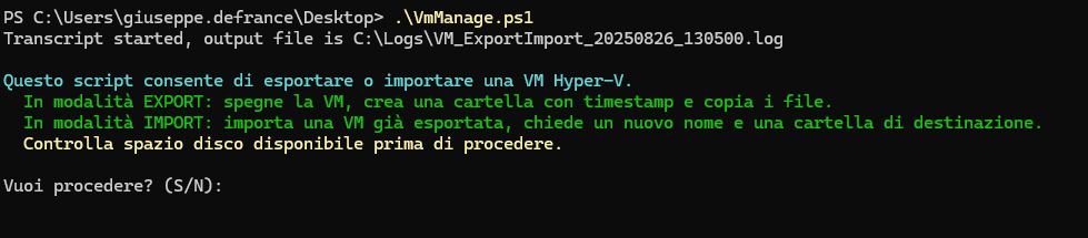 VmManage.ps1Questo strumento facilita le operazioni di import ed export.- Percorso di rete: