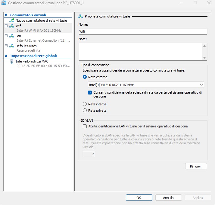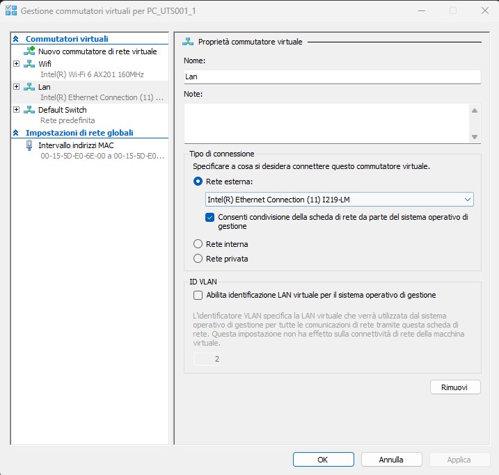 - Nel pannello Azioni a destra, clicca su Gestione commutatori virtuali....