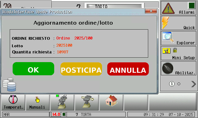 Struttura SCADA Interface – Cambio Ricetta & Aggiornamento Produzione