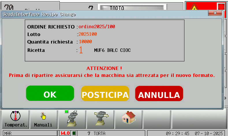 | ⏸️ RecipeChangePostpone | BOOL | Output | ⏸️ | Cambio ricetta posticipato |